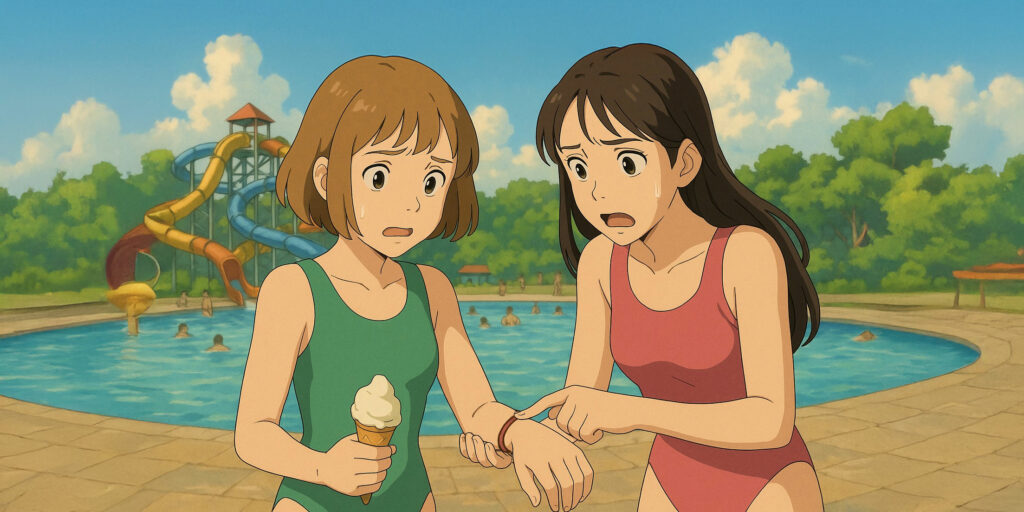 Notandole un po’ agitate e in difficoltà, si avvicina l’aiuto bagnino del parco, un ragazzo poco più grande di loro. Chiede cosa sia successo e, dopo averle ascoltate, con tono rassicurante dice: